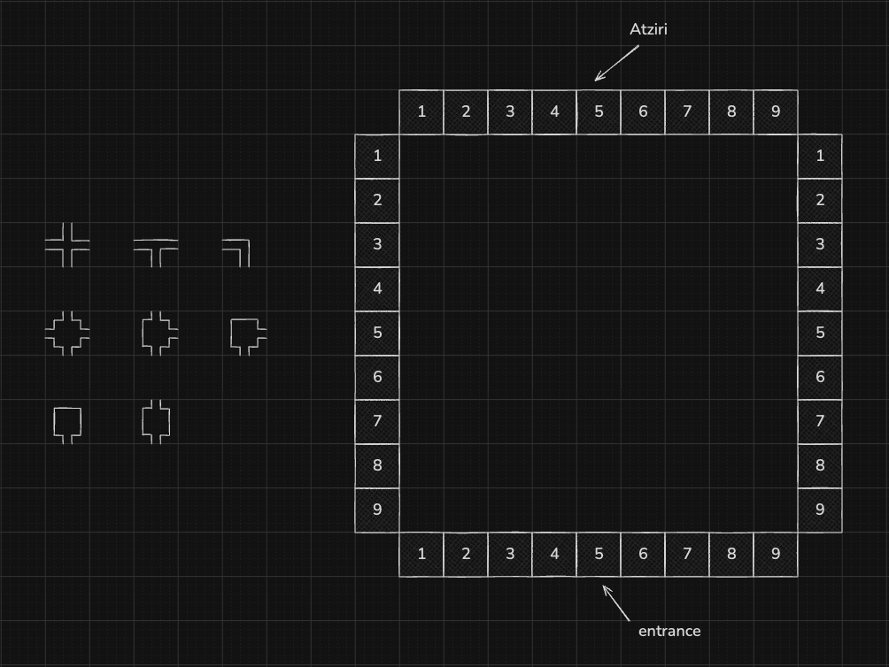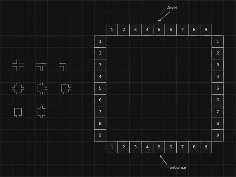 A diagram introducing the 9x9 grid of the Temple of Atziri.